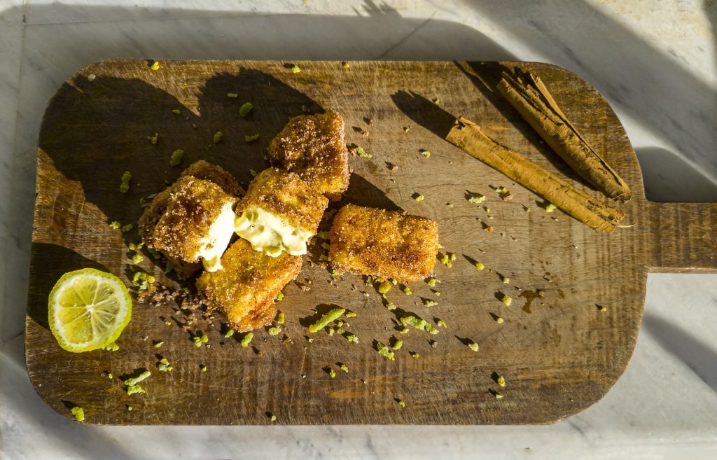 La torrija, cocinada a base de pan duro, azúcar, miel, huevos y leche o vino, tiene su origen en el siglo XV y no siempre fue una exquisitez, pues está vinculada a los tiempos de hambruna por ser un alimento altamente calórico, a la vez que sus ingredientes son poco costosos.