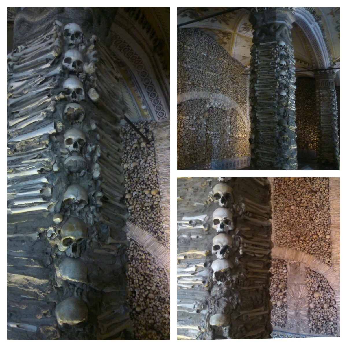 Esta iglesia alberga por cierto una de las más genuinas joyas de Évora: la sobrecogedora y turbadora Capilla de los Huesos. Las paredes y columnas de este enclave, revestidas con miles de huesos y cráneos humanos procedentes de los templos y cementerios de la ciudad, constituyen una silenciosa pero directa advertencia sobre la fugacidad de la vida. “Nosotros los huesos que aquí estamos, por los vuestros esperamos”, reza en el pórtico de entrada a esta estremecedora capilla construida entre finales del siglo XVI y principios del siglo XVII.