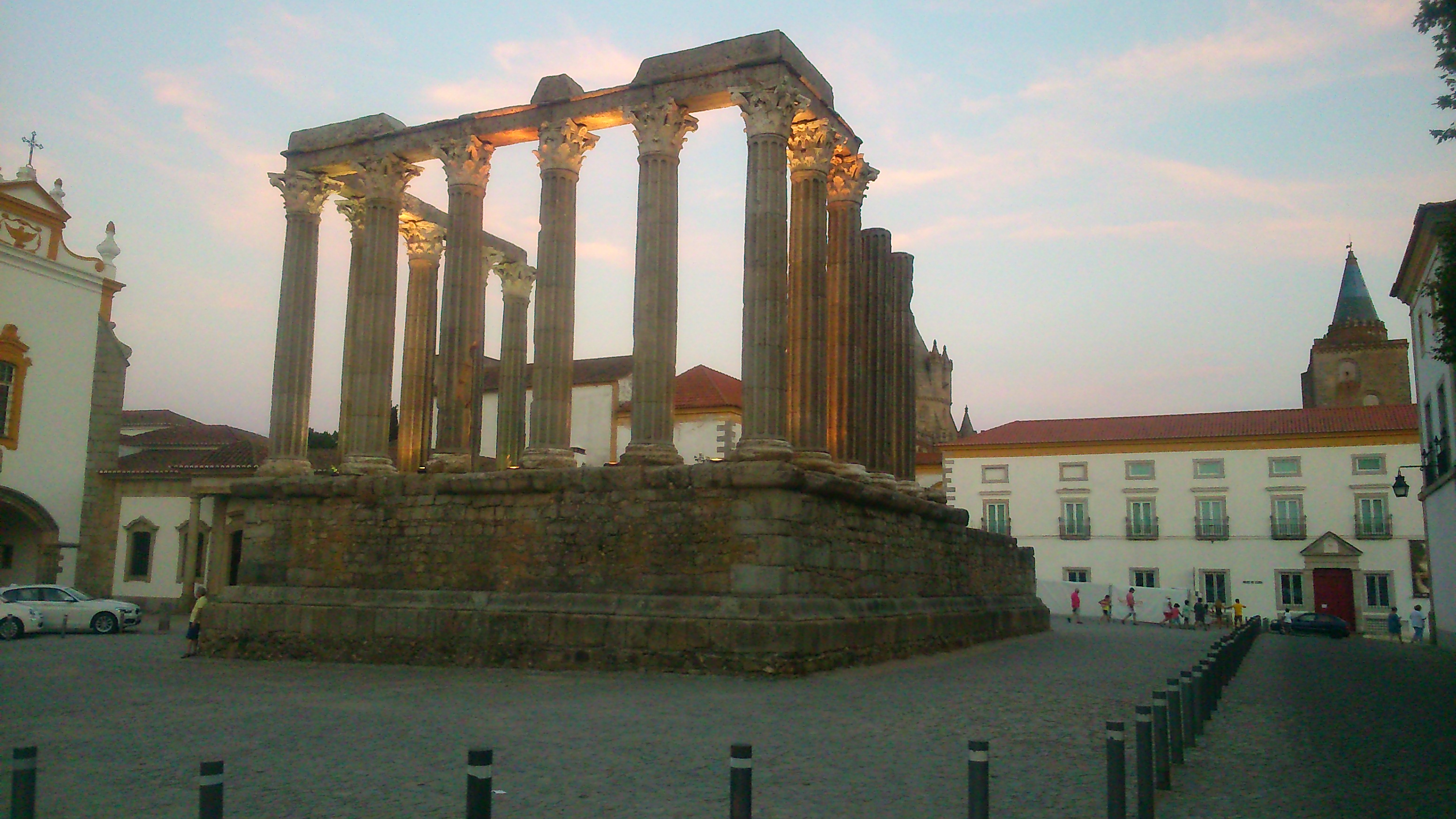 Nada lejos de allí se alza otra de las señas de identidad de Évora: las ruinas de su antiguo templo romano del siglo I de la era actual, atribuido a la diosa Diana y 14 de cuyas columnas aún se alzan orgullosas, algunas de ellas conservando incluso sus capiteles, como testigos de los primeros tiempos de la ciudad.