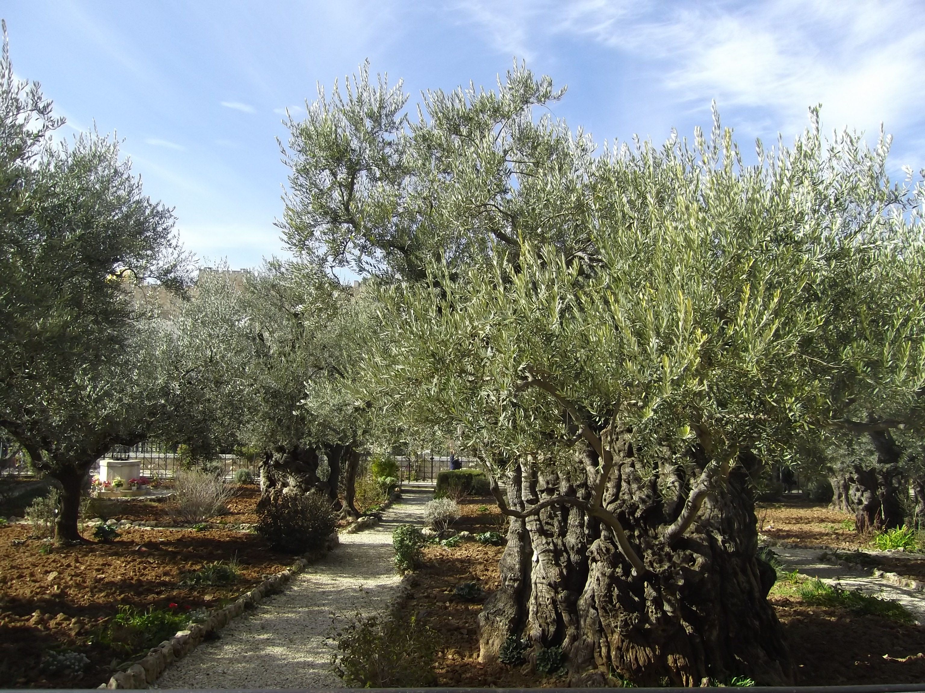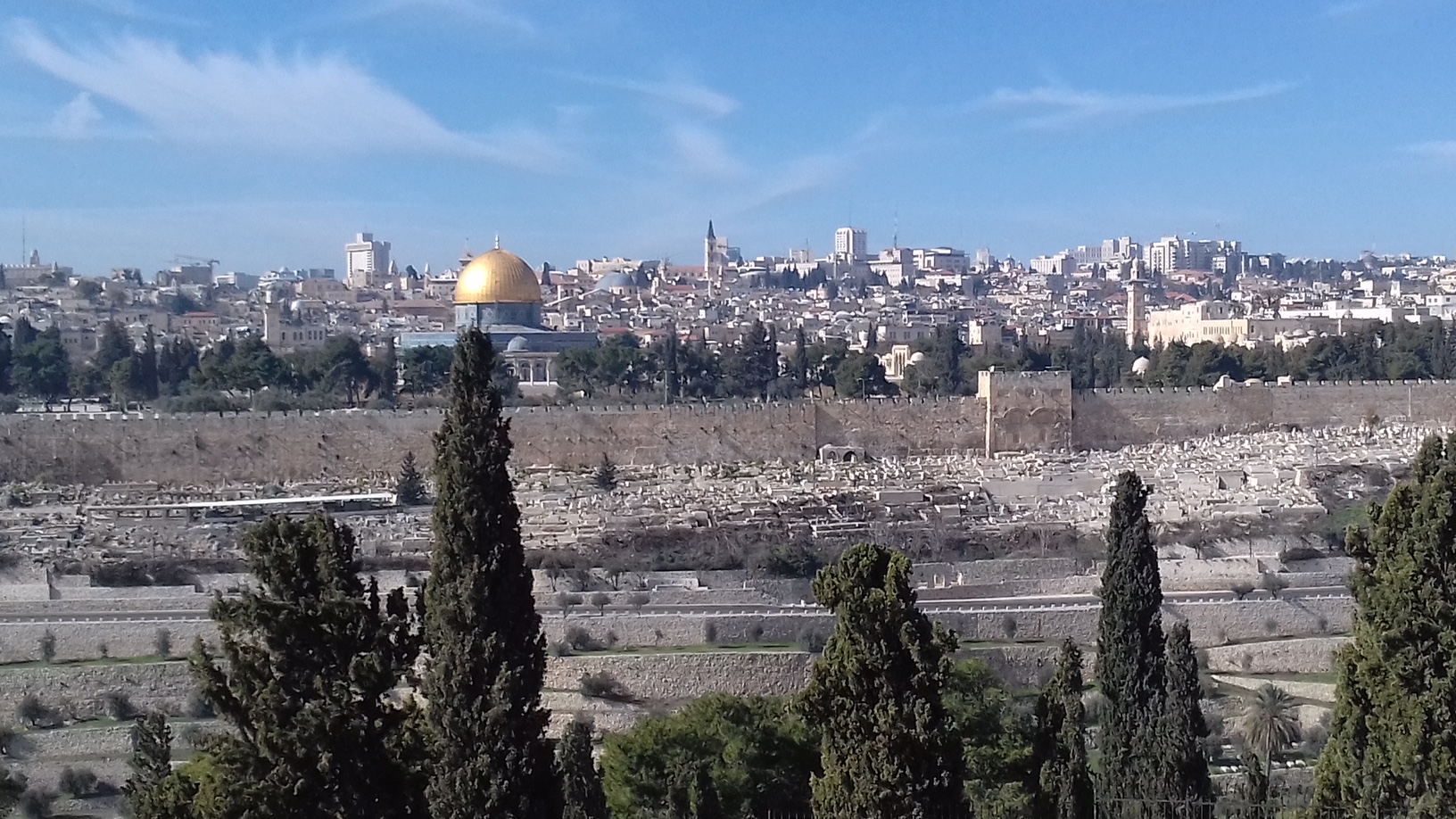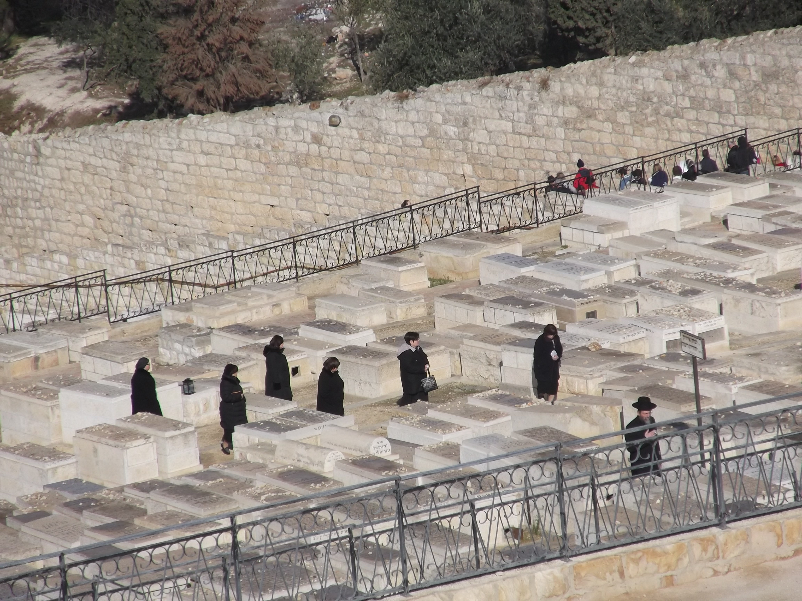Una de las visiones más espectaculares de Jerusalén es la que se obtiene desde el Monte de los Olivos, a medio camino entre la ciudad y Betania donde en los días de la Pascua judía en los que Jesús ya se sabía perseguido se paraba a orar con sus discípulos antes de volver a acogerse en casa de Marta y María, y donde fue apresado tras la traición de Judas. Junto al lago Tiberiades, es otro de los escenarios que es seguro que está en el mismo sitio que hace 2.000 años, aunque los grandes olivos que hoy pueden contemplarse (y cuyas ramas bendecidas o aceite de sus frutos se venden) serían entonces apenas pequeñas ramas. El más antiguo datado por el Carbono 14 en torno a esa fecha está destacado y protegido especialmente. Mientras siguen creciendo nuevas cepas plantadas, entre otros, por los últimos Papa. A los pies del monte de los olivos se erige también un lugar muy especial para los judíos, el cementerio más antiguo de la ciudad (de hace 3.000 años, época del Segundo Templo) y el más importante de Israel. Se divide en dos partes, la más baja de la ladera próxima al Valle del Cedrón -donde se encuentran las llamadas Tumbas de la Aldea de Siloé, hoy vacías, y caracterizadas por ser parte integrante de viviendas habitadas- y la parte más alta y próxima al Monte de los Olivos, donde se alternan panteones y tumbas muy sencillas sobre las que es costumbre depositar no flores sino pequeñas piedras con las que los judíos aspiran a reconstruir su Templo.