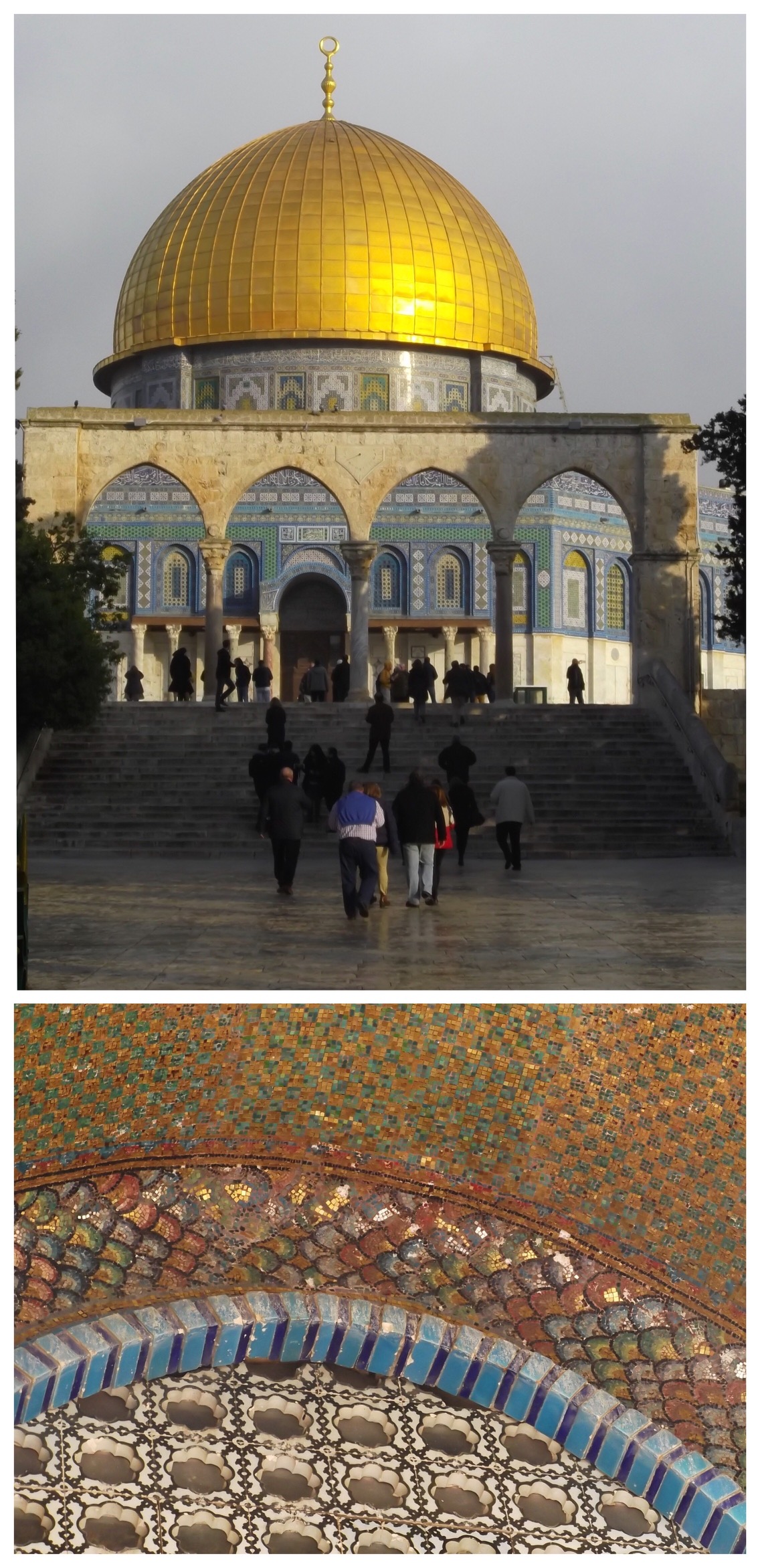 Sobre este muro se encuentra la explanada de las mezquitas, con la cúpula dorada de la Domo de la Roca, el edificio islámico existente más antiguo del mundo ya que data del año 691, y la Mezquita de Al Aqsa. Fue el califa omeya Abd al-Malik ibn Marwan quien inició la construcción del Domo de la Roca como santuario para peregrinos, creando una estructura para competir con los edificios de otras religiones existentes en la ciudad. Las paredes exteriores están hechas de porcelana y Suleimán el Magnífico las recubrió de azulejos de Iznik, que al igual que el recubrimiento dorado de la cúpula fueron restaurados el siglo pasado gracias a donaciones de los gobiernos de Arabía Saudí y Turquía o el rey de Jordania. Es uno de los sitios más sagrados del Islam junto a la Meca y Medina. Durante las cruzadas fue dada a los Agustinos, que la convirtieron en una Iglesia, y la mezquita de Al Aqsa fue el palacio del rey Balduino I en Jerusalén. Los Templarios la consideraron el Templo de Salomón y establecieron allí su cuartel general. Para los judíos está construida en el lugar exacto del sancta santorum de su Templo, y la roca que veneran los musulmanes es donde Abrahan se preparó para sacrificar a su hijo Isaac. Aspiran a recuperar el lugar, igual que reconstruir el templo, de ahí que sea uno de los lugares donde más se respira la tensión en Jerusalén (el acceso, de hecho está controlado y hay que pasar por detectores de metales y está prohibido todo símbolo religioso). Ni judíos ni cristianos -tampoco los turistas- pueden acceder al Domo de la Roca ni a la mezquita de Al Aqsa sin previa autorización especial. El lugar es territorio árabe pero es custodiado por la Policía israelí. Un ejemplo más del difícil equilibrio que se respira en un lugar que merece la pena visitar al menos una vez en la vida para ser consciente de hasta dónde puede llegar la sinrazón del ser humano convirtiendo en fuente de conflicto una ciudad tres veces santa.
