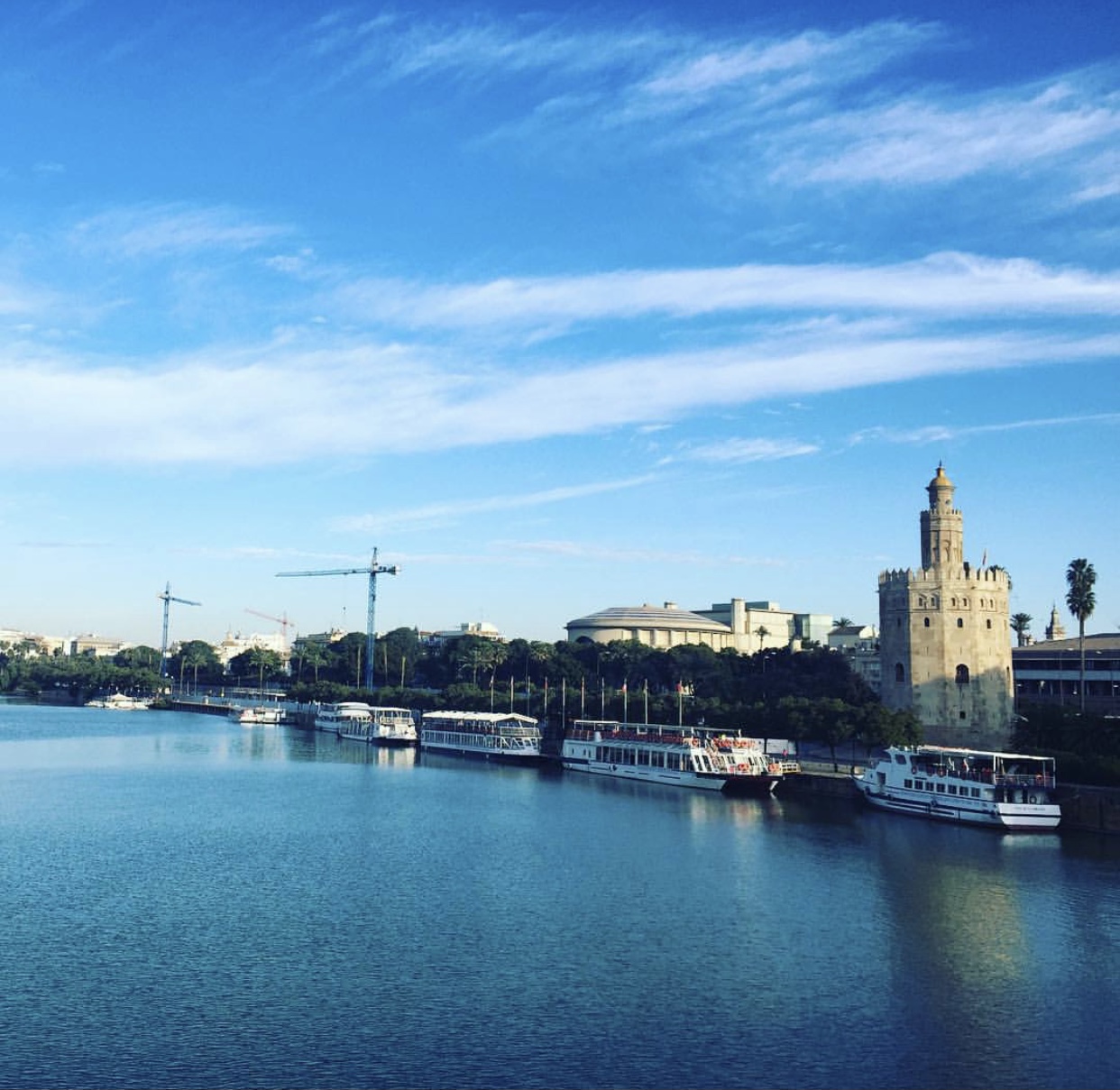 Además de su afamada Giralda, Sevilla cuenta con no pocas torres con personalidad propia, comenzando como no por la Torre del Oro, legado del antiguo recinto defensivo almohade, de planta dodecagonal, 37 metros de altura y rematada por una linterna cilíndrica añadida en 1760, en el marco de su restauración tras el terremoto de 1755.